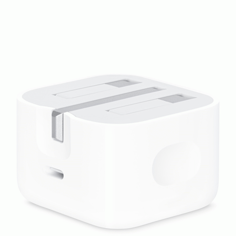 A compact 20 W USB-C power adapter / charger made by Apple. It supports USB Power Delivery (USB-PD) fast charging, which lets compatible devices charge much faster than standard USB chargers.