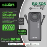 ⚡ BX-306 features dual USB-A, Micro USB, and Type-C ports in a slim, portable design with 20,000mAh capacity.