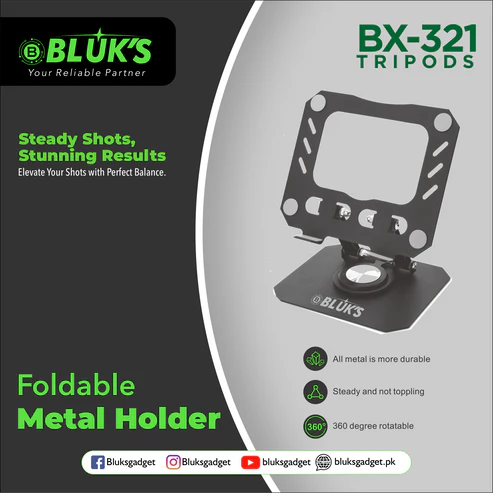 Elevate your viewing experience with the BLUK’S BX-321 Foldable Metal Holder â a premium, all-metal stand designed for maximum stability, flexibility, and convenience. Whether you’re watching videos, attending online meetings, or browsing hands-free, this holder ensures an optimal viewing angle, every time.