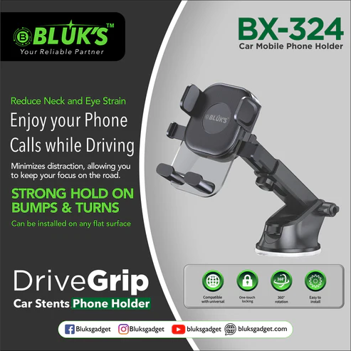 BX-324 Car Phone Holder is designed for convenience, safety, and style while driving. With its one-key locking mechanism and 360° rotation, it ensures your phone stays secure and always at the right angle.