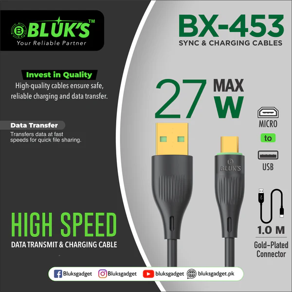 BX-453 combines speed, durability, and convenience, making it ideal for fast charging and smooth data transfer across all Micro USB devices.