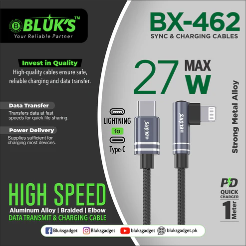 The BX-462 Lightning to Type-C Cable from BLUK’S is engineered for fast, reliable charging and high-speed data transfer. Perfect for mobile devices, keyboards, and daily digital use, it ensures efficient connectivity wherever you go.