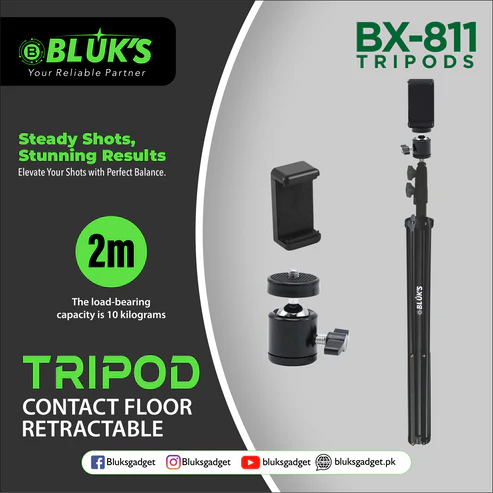 At Bluk’s Gadget, we specialize in durable and innovative accessories designed for creators, photographers, and professionals. The BX-811 Tripod Stand combines strength, flexibility, and portability to make every shoot effortless.