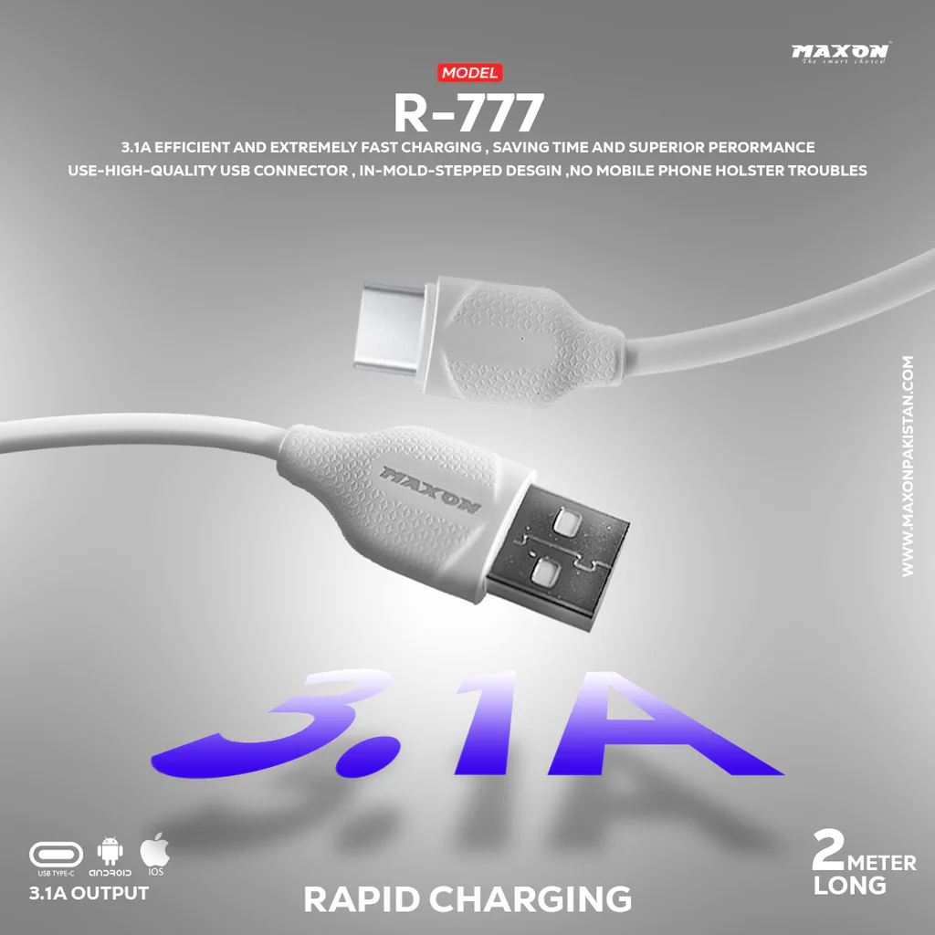 The Maxon R-777 data cable is the perfect solution for those who need an extra-long cable for their devices. With a length of 2 meters, this cable provides ample length for easy charging and data transfer. Its fast-charging technology ensures that your devices are charged quickly and efficiently, while its durable construction guarantees long-lasting use. Plus, with a 6-month brand warranty, you can trust that this cable will provide reliable performance.